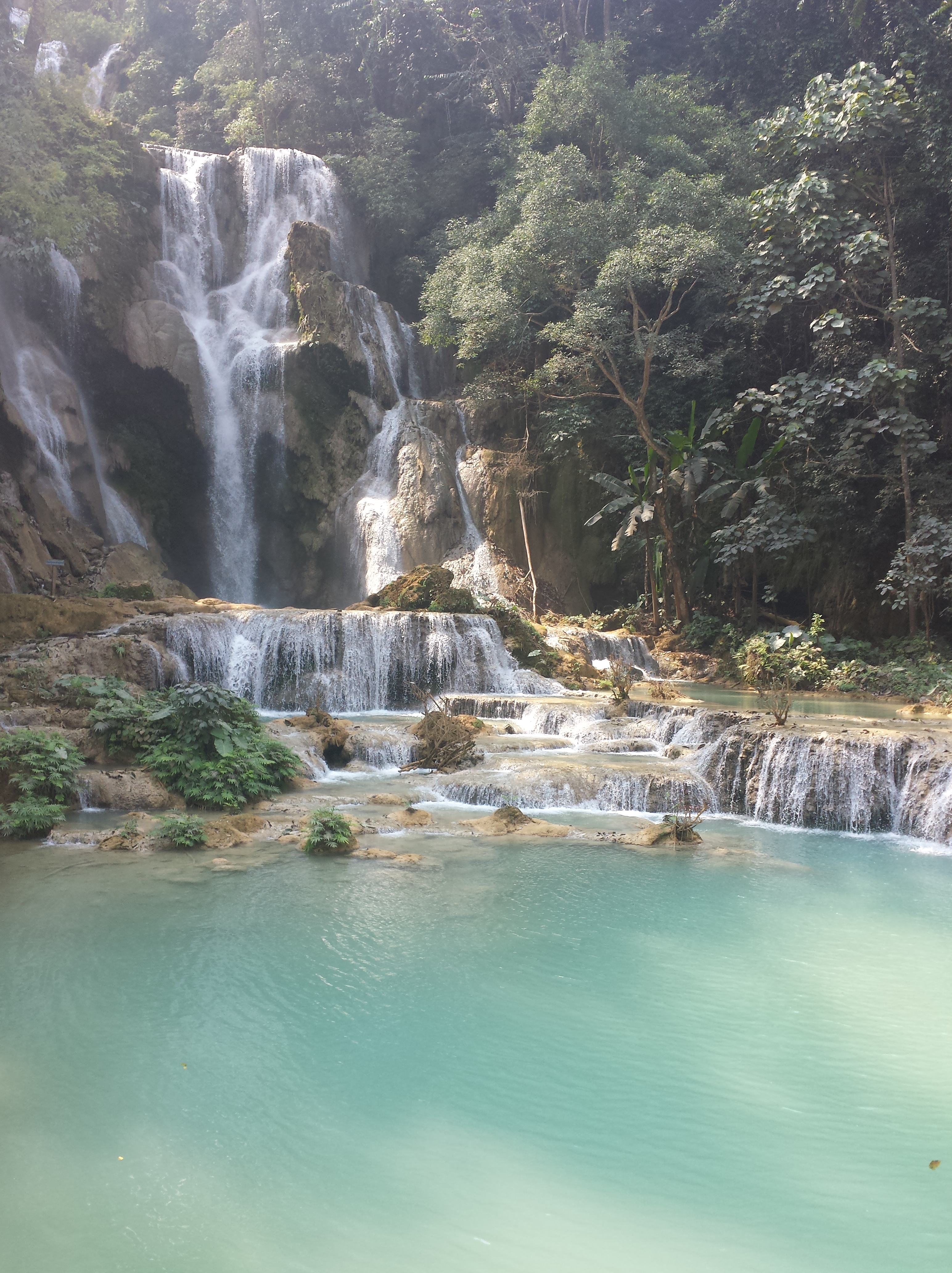 Nach einem europäischen, süßen Frühstück – das musste nach vier Tagen mit Omelette und Morgensuppe einfach sein 😊 ging es in ner halben Stunde Busfahrt zum Kuang-Si-Wasserfall. Hammer, sag ich euch. Wie Karibik. Hab mich immer schön antizyklisch zu den Touristenströmen bewegt und konnte das Ganze wirklich genießen.
