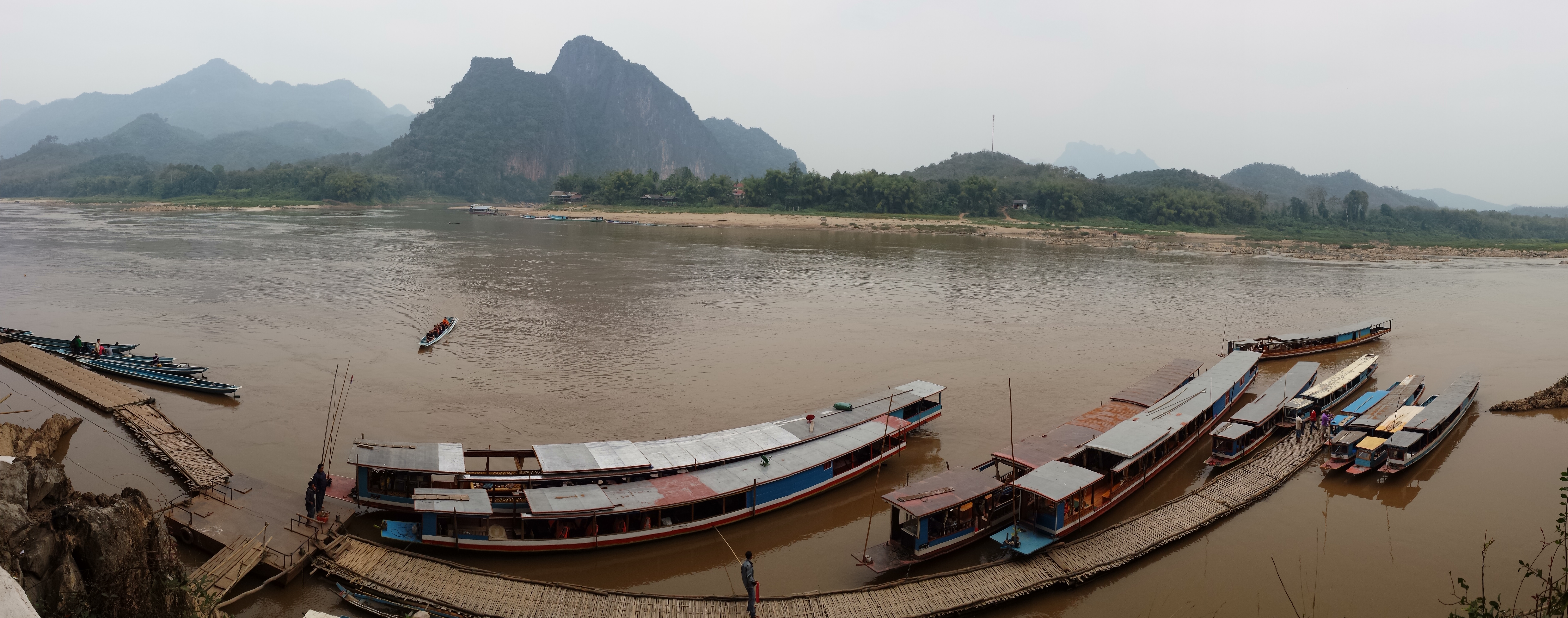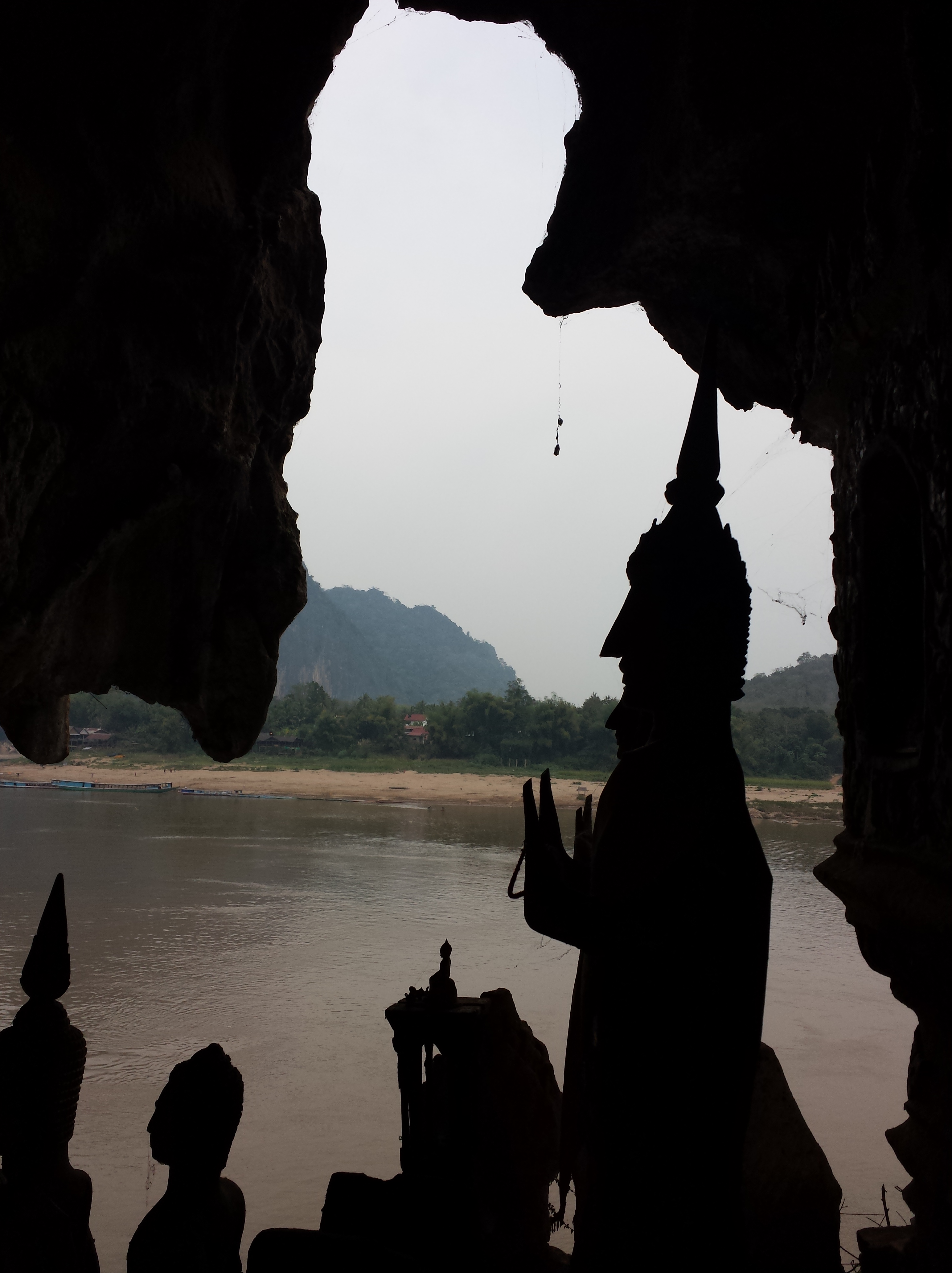 Der Ausflug zu den Pak Ou Höhlen am Vormittag war wieder mehr das Touri-Programm. Mit dem Langboot sind wir zwei Stunden den Mekong raufgeschippert. Hätte vermutet, dass am und im Fluss mehr los ist. Schließlich ist er die Lebensader Laos‘. War aber alles ganz gemächlich und obwohl nicht sonderlich spektakulär, doch schön.