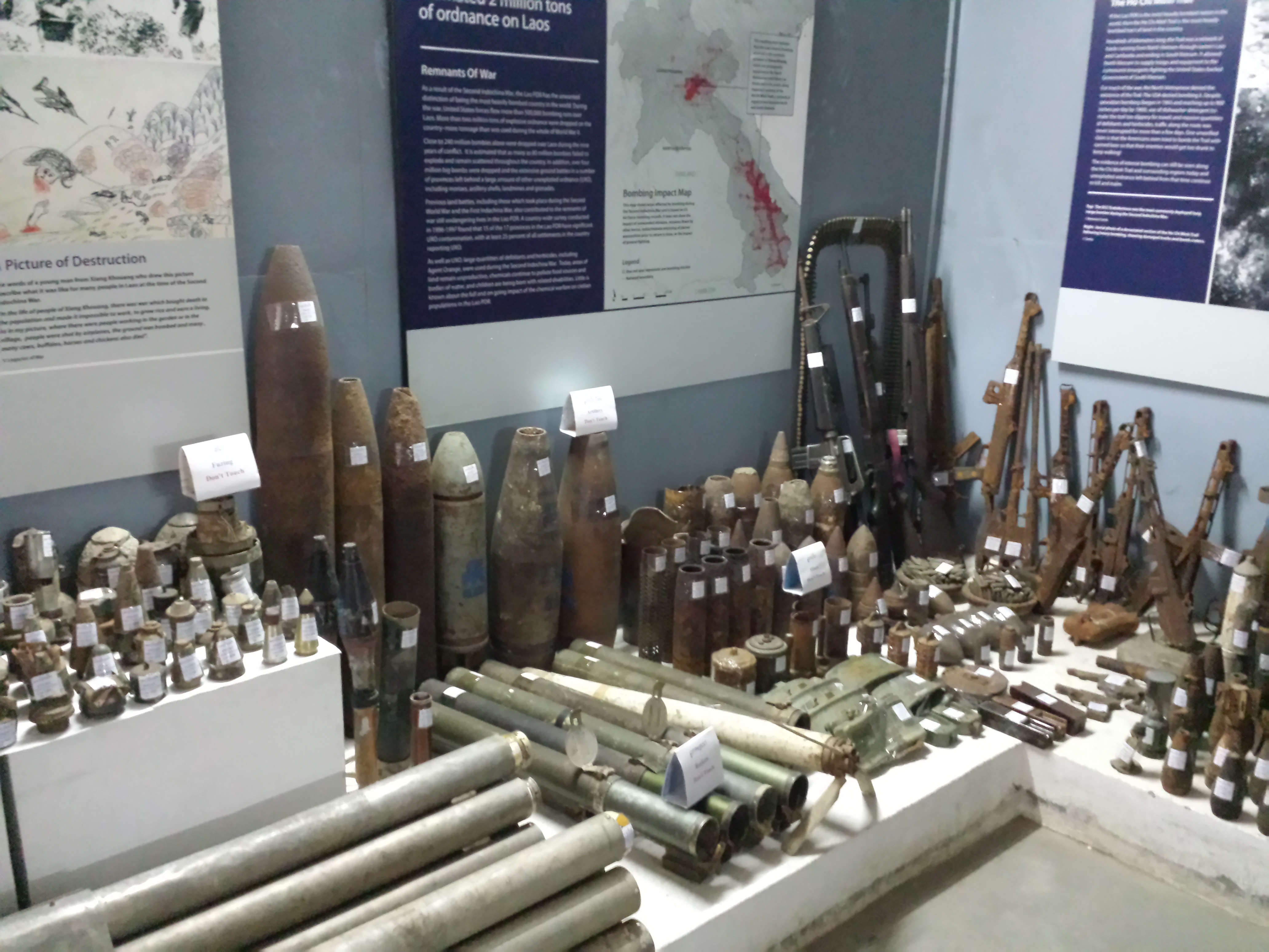 Was hat die „zivilisierte Welt“ diesem friedliebenden, naturverbundenen Volk nur angetan! Mehr als 2 Millionen Tonnen Sprengkörper sind in 9 Jahren auf das kleine Land abgeworfen worden, 30% davon sind nicht detoniert! ich kann es gar nicht verkraften, welcher Gefahr Kinder und Menschen in den Dörfern noch heute ausgesetzt sind… bei ganz alltäglichen Arbeiten wie Land umgraben, Feuer machen oder jagen. Und welche fatalen Konsequenzen eine UXO-Explosion neben der Verletzung, dauerhaften körperlichen umd seelichen Behinderung und der schlechten medizinischen Versorgung hat: nicht vollwertig arbeiten zu können bedeutet kein Einkommen, keine Schule und schlimmstenfalls kein Essen auf dem Tisch. Das kleine Museum hat im Lonely Planet keinen Stern bekommen, ich finde aber, der Besuch ist ein absolutes Muss. Es wird auch die aufwändige Suche und absichtliche Zündung der noch überall verstreuten Sprengkörper beschrieben. Wen es interessiert: uxolaos.org