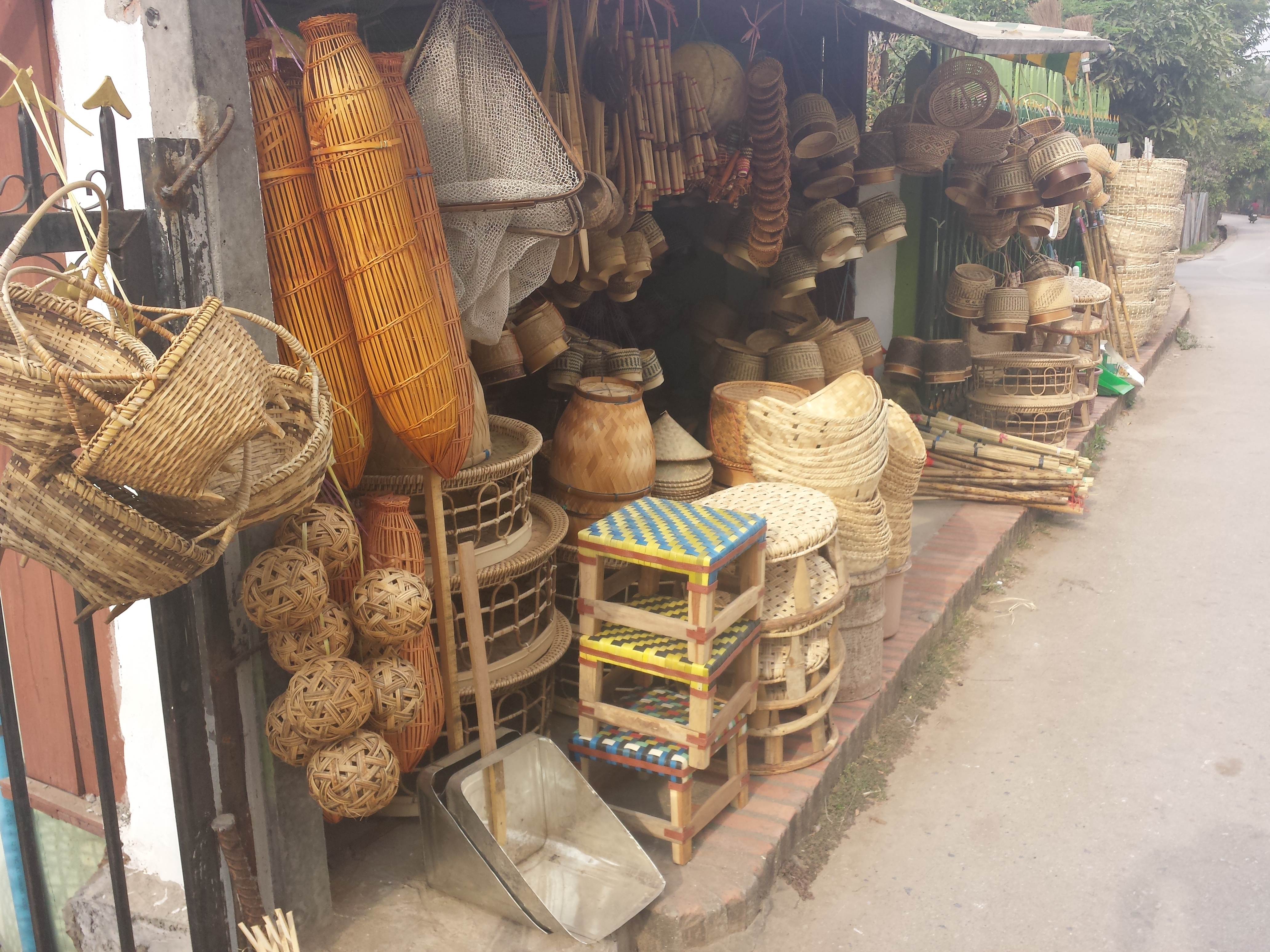 Dabei gäbe es auch noch wunderhübsche Tücher, bestickte Taschen, Decken, Bilder, Lampen aus Sa-Papier, Flechtkörbe, Lao Kaffee und Tee und … nicht zu vergessen diesen unsäglichen Whiskey mit eingelegten Schlangen, Skorpionen, Schildkröten. Ab sofort sollte ich um jeden Markt einen großen Bogen machen.