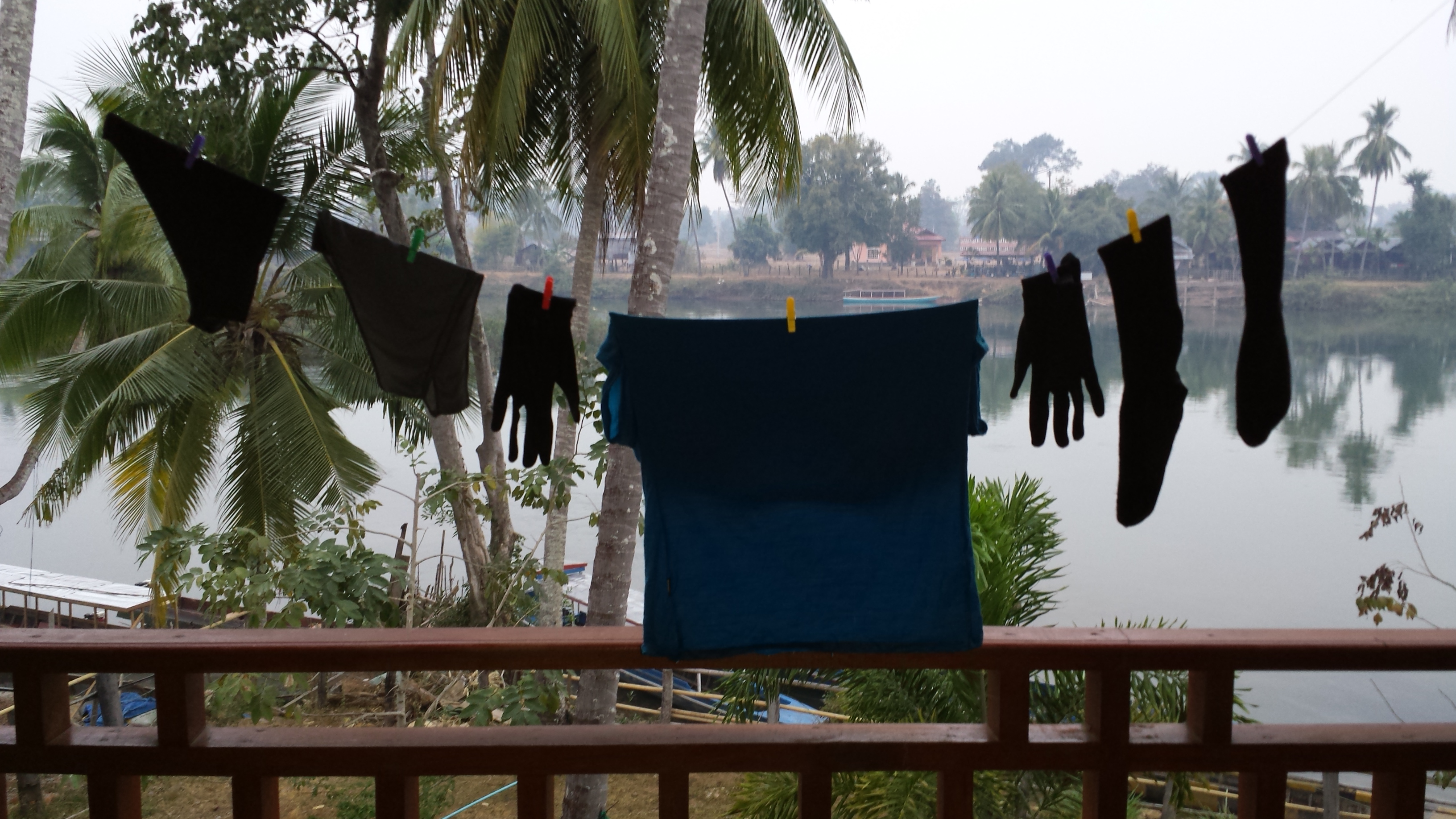 Angeregt von dieser natürlichen Waschmaschine habe ich auch sogleich einen Waschtag eingelegt. Die Arbeit der letzten Laundry hatte ja nicht ganz den deutschen Qualitätsstandards entsprochen. Außer Flecken, Staub und Schweiß hat die gute Frau bzw. ihre Maschine leider auch die Farbe ordentlich rausgewaschen.