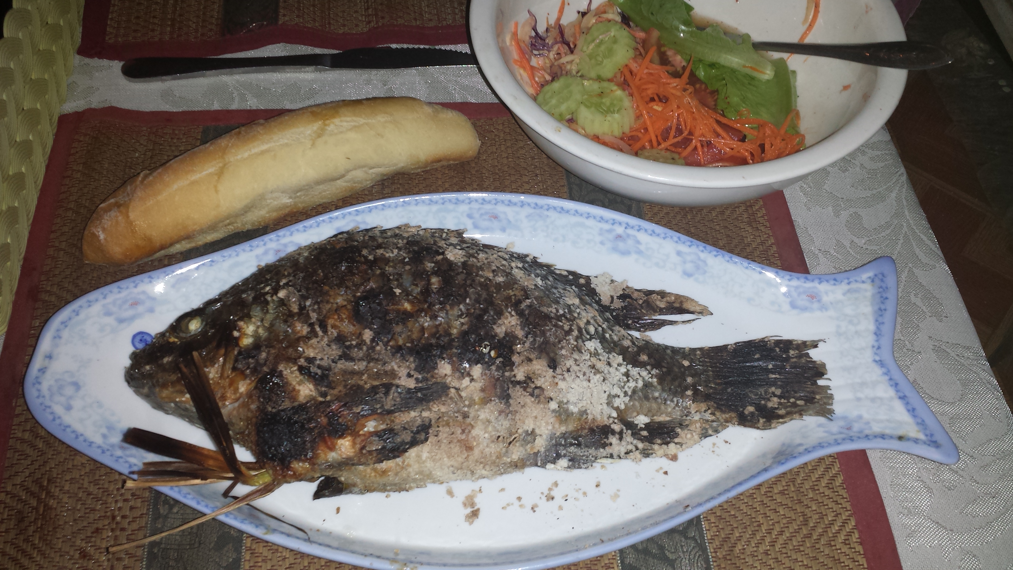 Geschmeckt hat er, so wie der Mekong aussieht… a bisserl modrig. Hat mich sehr an Matthias Angeltrophäen aus dem Ottenhofener Weiher erinnert 😂 Und sakrische Gräten hat er noch dazu. Aber die Wirtsleut waren so was von herzig und die Atmosphäre mit Kind und Kegel, BeerLao und Gesang ganz wunderbar.