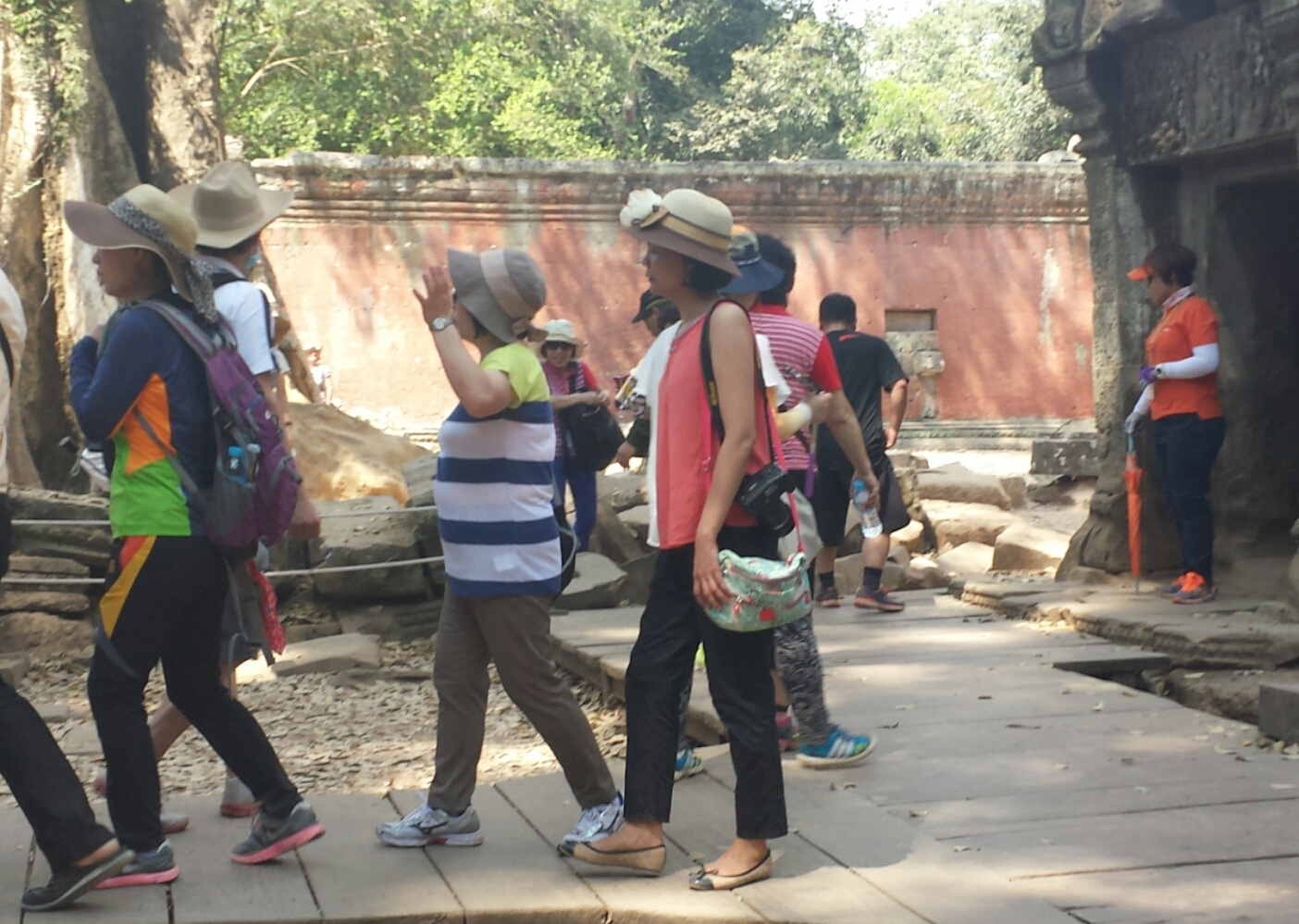 Vor Ort ist alles auffallend gut organisiert, um die Besuchermassen in Angkor Wat zu bewältigen. Einzig verwunderlich nach europäischen Maßstäben ist, dass die Kulturwanderer nahezu überall rumkraxeln dürfen. Ein Schritt nach hinten beim Fotografieren kann da tiefgreifende Folgen haben.