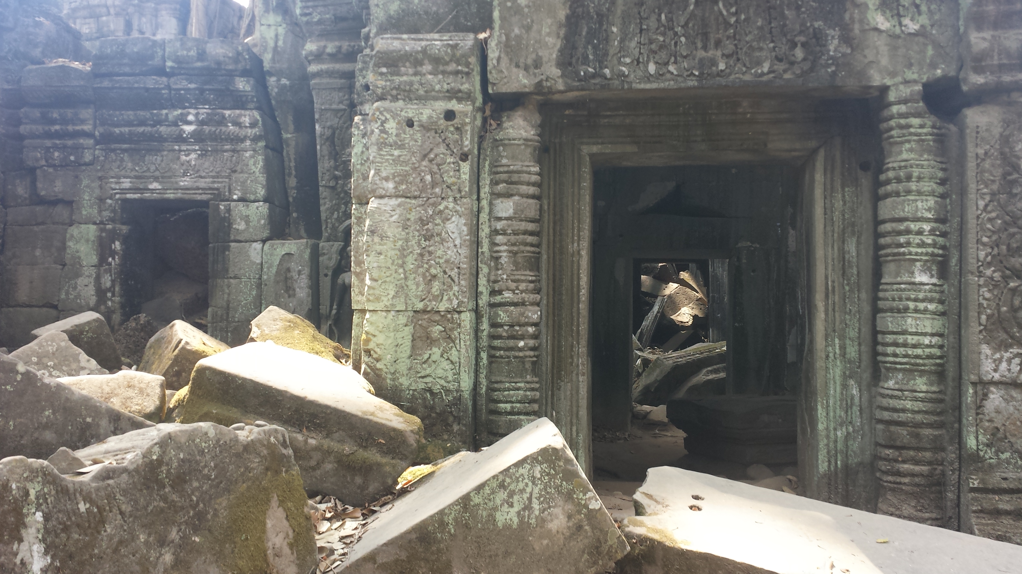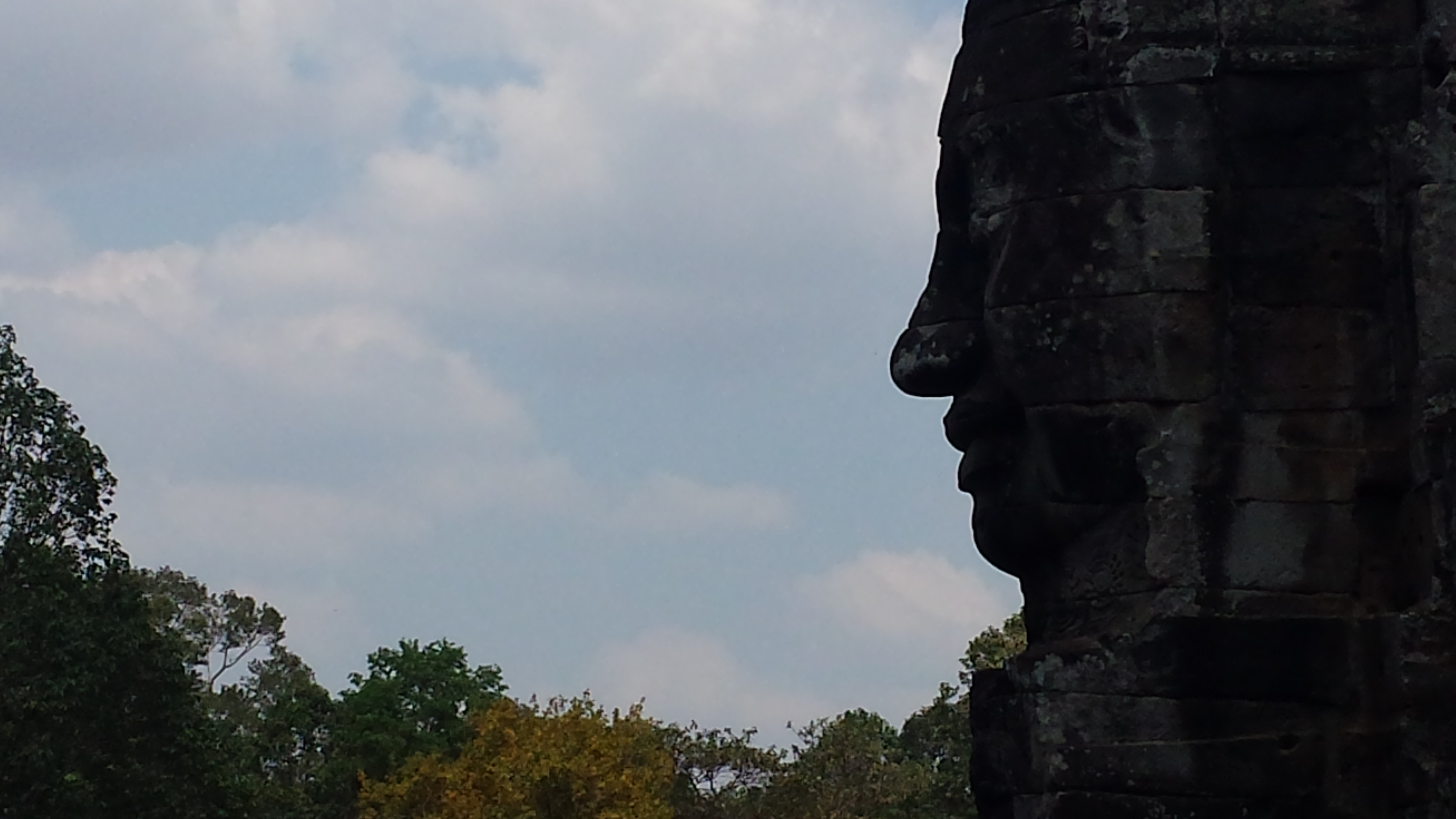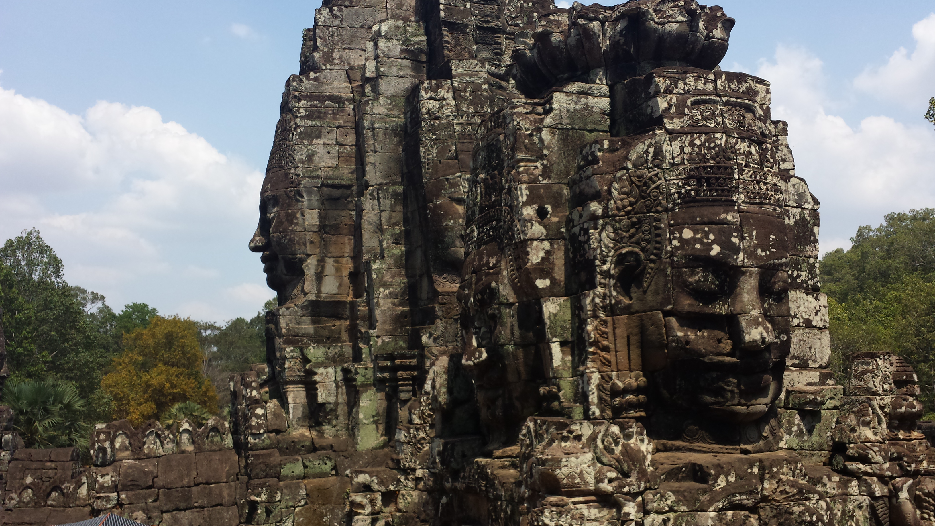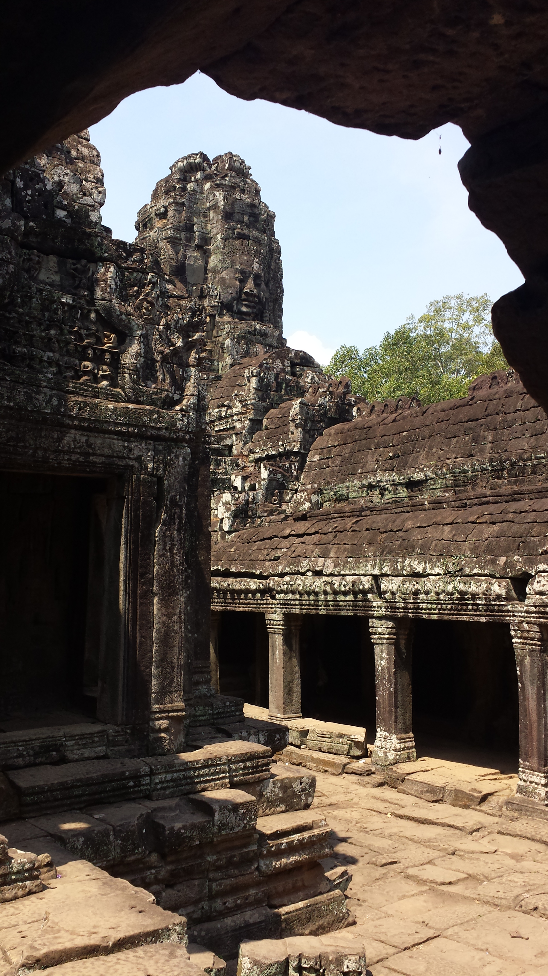 Architektonisch mehr fasziniert hat mich der daran anschließende Bayon-Tempel mit seinen verschachtelten Gängen und den großen Antlitzen des Herrschers, die einen immer und in jedem Winkel des Bauwerks im Visier haben.