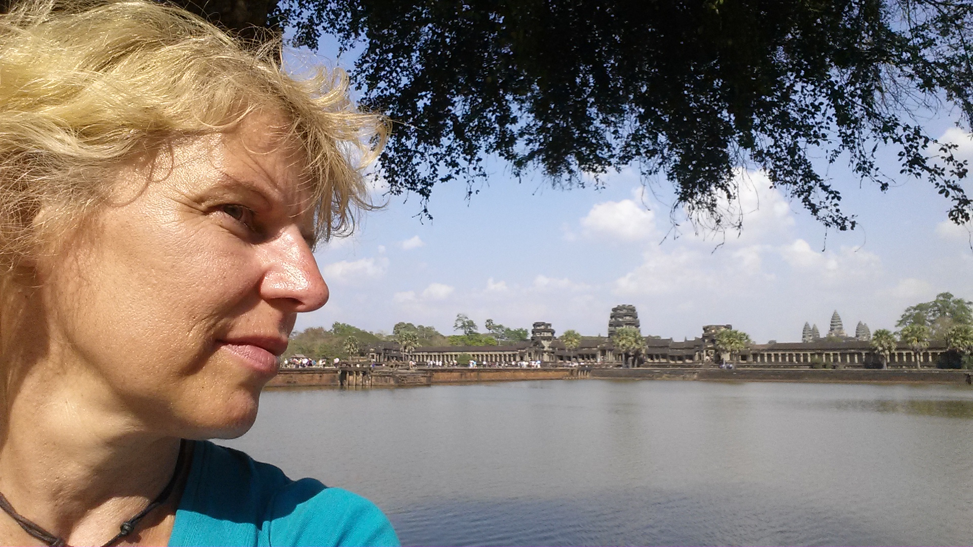 7-8 Stunden habe ich mich tapfer durch die Ruinen von Angkor Wat geschlagen. Müde und hungrig geselle ich mich in Erwartung  des Sonnenuntergangs unter die gespannt Wartenden. Obwohl weit und breit kein Schimmer von orange zu sehen ist, weil die Sonne nämlich hinter den Schleierwolken steht, beginnen alle Asiaten wild und hektisch zu fotografieren… mit der Sonnenuntergangseinstellung ihres Smartphones 😉