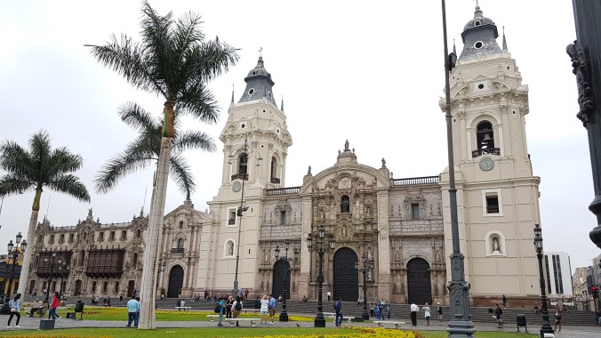 Die Kathedrale von Lima zur rechten Seite ist erhaben, aber nicht dominant.