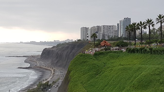 Wie schon erwartet, ist dieser Teil Limas nicht so mein Ding.  Aber jetzt kann ich wenigstens mitreden. Wenig beeindruckt schlendere ich vom in die Küstensteilwand einbetonierten Einkaufszentrum Lacomar zum Parque de Amor. Warum daraus jetzt eine Touristenattraktion gemacht wird, kann ich auch nicht nachvollziehen. Aber ein paar schöne Fotos kann man hier schießen.