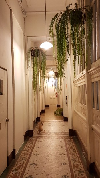 Das 1900 Backpacker Hostel empfängt mich mit einer warmen, heimeligen Atmosphäre. Ich bin gleich hin und weg von den hohen, altehrwürdigen Räumen. Dunkles Holz, Marmorböden, große Fenster, Kronleuchter kombiniert mit modernen, jungen Elementen. Und dazwischen – neben den netten, quirligen Menschen – eine coole Katze.