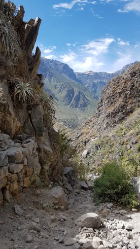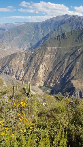 Ausgestattet mit ausreichend Wasser für zwei Tage, Wanderkarte und Sonnenschutz verlasse ich Cabanaconde. Welch eine traumhafte Lage dieser kleine Ort im Nirgendwo hat!