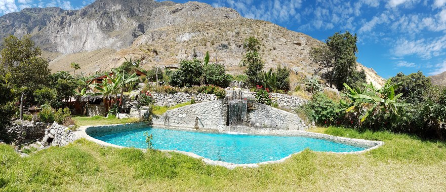 Am nächsten Morgen verlassen alle die Oase schon zu Schlafenszeiten, also habe ich den kleinen Garden de Eden ganz für mich alleine. Auf 2200 m im Oasen-Pool schwimmen und rundum zu den Canyon-Wänden aufschauen, das hat was.