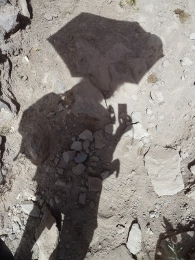 Gegen Mittag bin ich gut erholt für die 1200 hm Aufstieg aus dem Canyon … denke ich. Dank Schirm kann ich die Sonne zumindest davon abhalten, mein Hirn zu braten, aber auch so schafft mich die Steilheit, die stehende Hitze und der staubige Weg. Mit dem Atmen klappt es trotz angehender Angina recht gut. Ich kämpfe mich von einem der raren Schattenplätze zum nächsten. Ich weiß, ich schaffe das, auch 1200 hm haben irgendwann mal ein Ende.