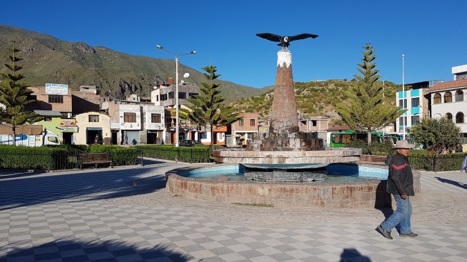 Manu liegt noch im Bett. Da wird es mir schon wieder etwas mulmig, schließlich geht um 7 Uhr, also in knapp 30 Minuten der Bus zum Cruz del Condor an der Plaza ab. Leichte Hektik bricht aus und kurz vor knapp haste ich mit meinem Backpack zur Plaza. Adiős Cabanaconde und Pachamama Hostel.