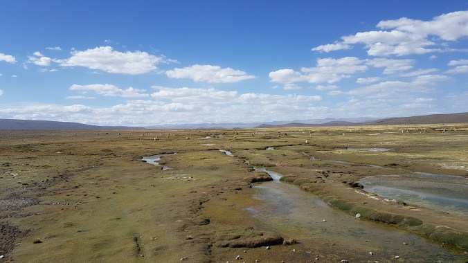 Im einem großen Bus von 4M Express geht es um 13 Uhr weiter auf die lange Fahrt durchs Altiplano. Alpakas und Vikunas sehe ich natürlich auch wieder und wenn ihr die Bilder ganz genau anschaut, werdet ihr sie auch finden. Manchmal stehen sie top-fotogen direkt neben der Straße, aber irgendwie drücke ich dann vor lauter Aufregung immer den falschen Kopf der Kamera.