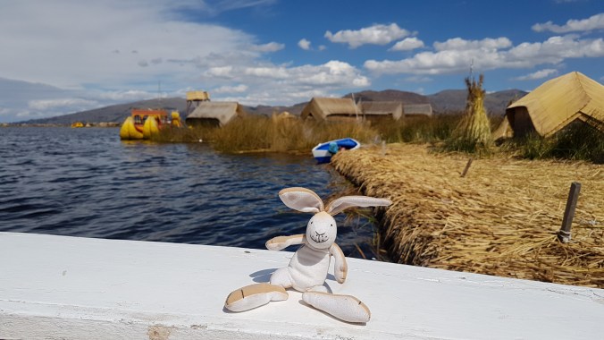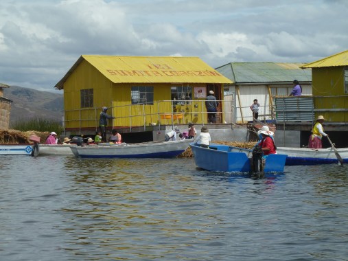 Danach werden wir für die Überfahrt mit dem Totora-Boot zur nächsten Insel sozusagen zwangsrekrutiert – zum Sonderpreis von 3 Soles. Diese Restaurant-Insel, wo man auf 100 Quadratmetern eine Stunde verbringen soll, ist das beste Beispiel für verkommenen Tourismus. Jedes Boot wird auf dem passt Quadratmetern über Lautsprecher begrüßt. Echt ätzend!