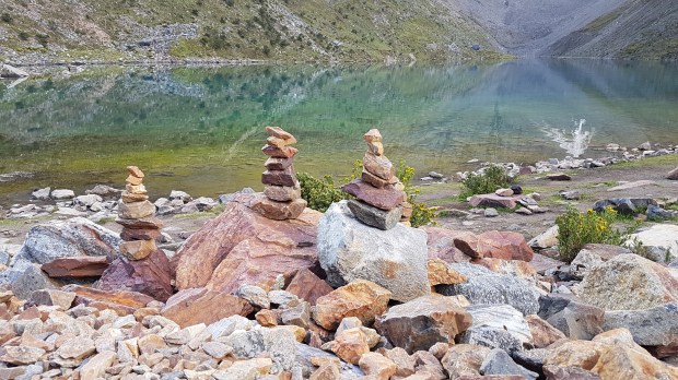 … wäre ich mal besser abgestiegen!  Aber nein, der Guide der anderen Salkantay-Gruppe kündigt mit ausschweifenden Worten eine Schamanen-Zeremonie an und schwupp-di-wupp sitze ich am kalten Hochgebirgssee in einem spirituellen Kreis fest und traue mich für die nächste lange Stunde nicht mehr, den mystischen Ring zu verlassen – und damit am Ende allen anderen Unglück zu bringen.