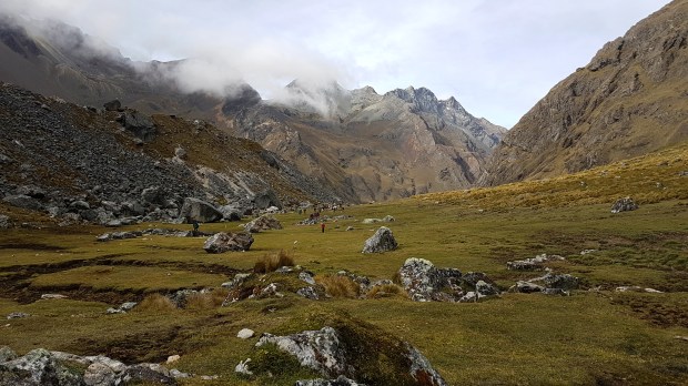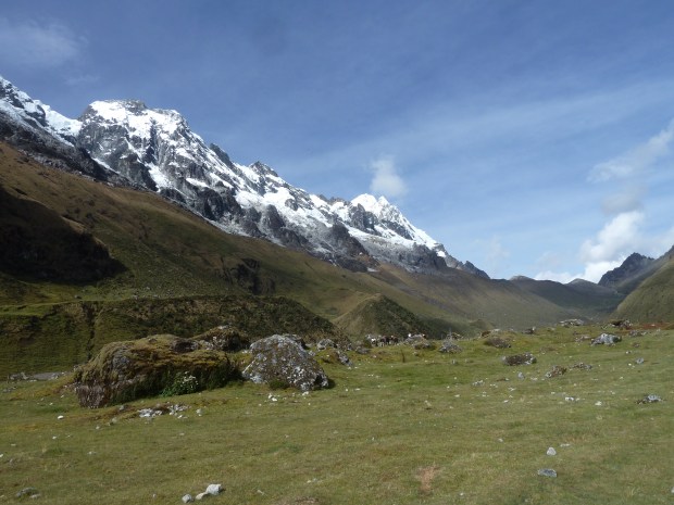 Irgendwann schaut dann auch der Apu Salkantay ums Eck und in der Ferne erkennen wir schon unser Camp Soraypampa (3850 m) mit den wunderbaren Sternenhimmel-Iglus.