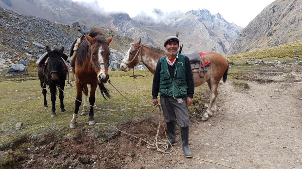 Am nächsten Morgen sagen wir Good-bye zu unserem  Horseman Luis. Er macht sich nun mit seinen Mulis auf den Rückweg nach Mollepata – nicht in zwei Tagen, nein, er muss den Rückweg über den Salkantay-Pass bis zum Startpunkt in nur einem einzigen Tag bezwingen, um dann (in der Hochsaison meist ohne freie Tage) die nächste Gruppe zu übernehmen.