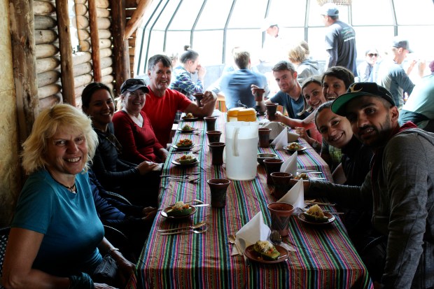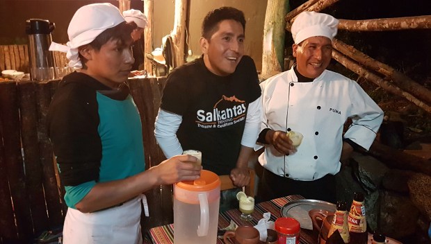 Am Abend gibt es die letzte Henkersmahlzeit von unserem Spitzen-Koch Elio. Dann müssen wir uns leider verabschieden, denn in Aquas Calientes werden wir in Restaurants essen.