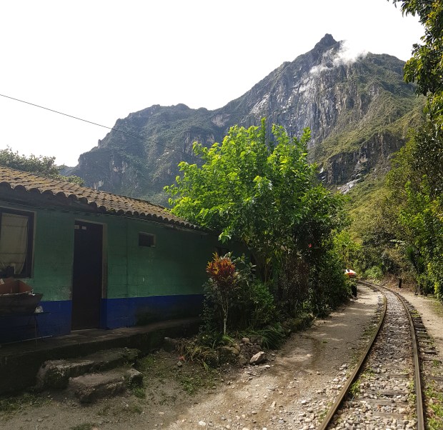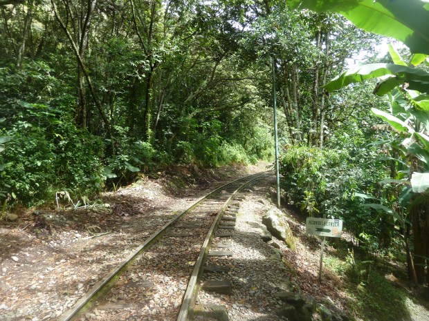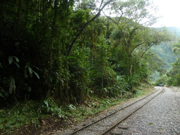 Hidroeléctrica ist die absolute Endstation der Zugroute von Poroy (Cusco) über Ollantaytambo und Aquas Calientes bzw. wie es inzwischen heißt Machu Picchu Pueblo. Nachdem die halbstündige Zugfahrt sage und schreibe 30 US $ kostet und es auch nur zwei Züge am Tag gibt (was auch erklärt, warum der Hund so entspannt auf den Gleisen liegt 😉  wandern die meisten Touristen die Strecke von  Hidroeléctrica bis Machu Picchu Pueblo an den Bahngleisen entlang.