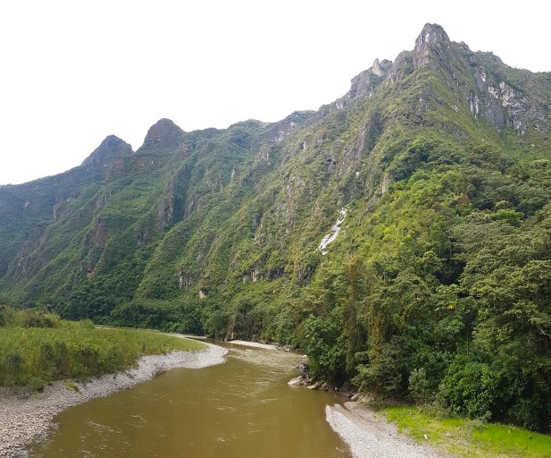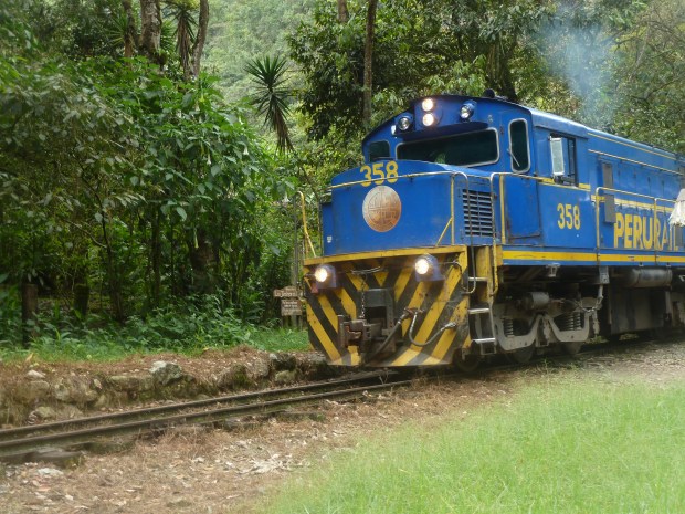 Der Schienenstrang zieht sich ganz schön, es bietet sich aber auch eine phantastisch dichte und wilde Vegetation links und rechts der Bahngleise und zwischen den steil aufragenden Bergen. Auch den knallroten Nationalvogel Cock of the Rock (also Felsenhahn) entdecken wir im Vorbeiflug.