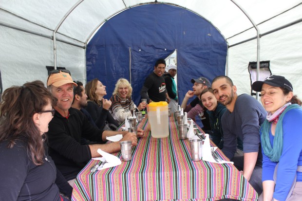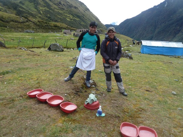 Weiter des Weges erwartet uns unser Koch-Team wieder mit einem leckeren Menü – natürlich nicht bevor wir die Hand-Wasch-Straße ordnungsgemäß passiert haben . Elio kocht und würzt wirklich phantastisch abwechslungsreich mit frischen Kräutern. Das beste Essen während meiner ganzen Peru-Reise!