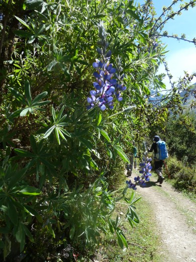 Im ganzen Andenraum sind überall die blau-lila blühenden Anden-Lupinen anzutreffen und wir erfahren, dass diese Hülsenfrucht bereits von den Inka kultiviert wurde. Eine weitere bereits von den Inka genutzte Andenpflanze ist Muña, eine Art Minze, die als Tee und Gewürz heilende Wirkung hat, aber auch als Insektizid wirksam ist.  Coca ist ja allen bekannt. Es ist zwar auch in Peru offiziell verboten, aber aus Tradition geduldet. Coca gibt es in allen möglichen Formen: als getrocknete Blätter zum Kauen, als Tee, in Bonbon-Form, zum Trinken, zum Einreiben …