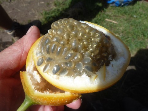 Tag 3 des Salkantay-Treks führt uns von Chaullay über La Playa nach Lucmabamba. Der Weg selbst ist eher fade. Dafür gibt es jede Menge Pflanzenkunde. Links und rechts des Weges wachsen wild und in Plantagen Avocados, Bananen, Kaffee und die Passionsfrucht Granadilla. Sehr, sehr lecker und ideal als Rucksackgepäck.