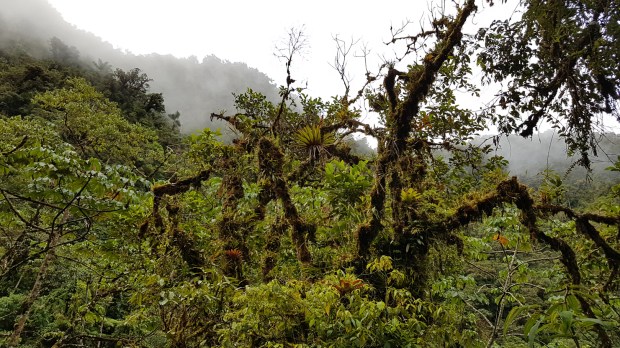 Der Nebelwald ist feucht und – wie der Name schon sagt – neblig. Hier trifft das verdunstete Wasser des Amazonas-Regenwaldes auf die Ostseite der Anden und regnet sich ab. Gerade das macht den Reiz dieser mystischen Umgebung mit der besonderen Vegetation aus. Vielfarbige Flechten und wilde Bromelien klammern sich an knarzige Bäume, Lianen und die langen, beutelartigen Nester der Webervögel hängen träge herab, die Nebelschwaden gleiten beruhigend dahin und geben immer wieder neue Aussichten auf diesen verwunschenen Zauberwald frei.