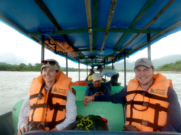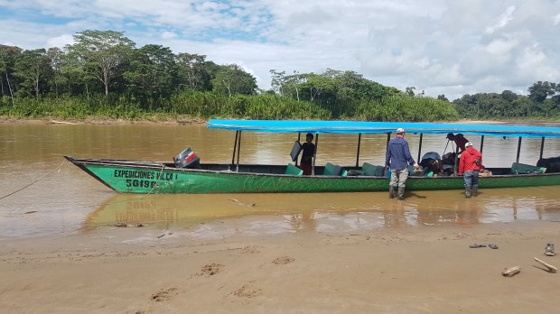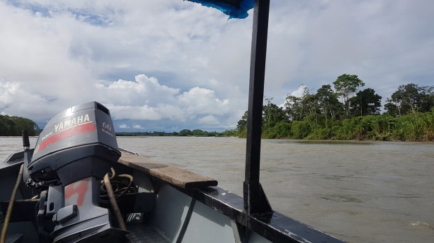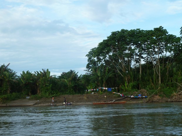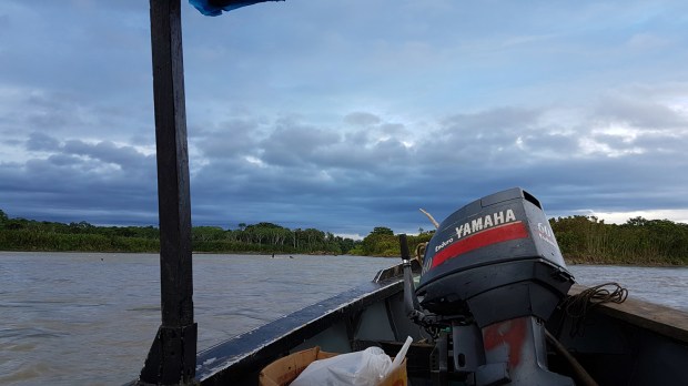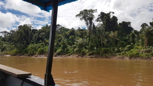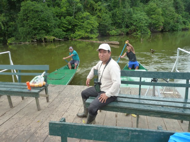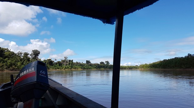 Vor dem Sanctuary sammelt uns unser Busfahrer wieder auf und wir holpern Atalaya entgegen, wo wir nach einer kurzen Pause auf ein Langboot umsteigen, um den Rio Alto Madre de Dios stromabwärts zu fahren. Unseren eher älteren Busfahrer tauschen wir aus gegen den jungen, stets fröhlich strahlenden Amazonas-Kapitän Cesar und seinen ebenso frisch-frechen „Jung-Matrosen“. Die heutige Wasser-Reise von Atalaya bis zu unserem Tagesziel Boca Manu wird 6 Stunden dauern.