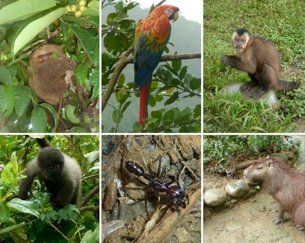 Schließlich erreichen wir eine kleine Auffangstation, in der mutterlose Tierbabys aufgepeppelt werden, bevor man sie wieder in den Dschungel entlässt. Die kleinen Tierchen laufen hier relativ frei herum und wir haben die Gelegenheit, einen kleinen Wollaffen, ein Faultier-Baby, einen Nasenbären (Coati), ein Wasserschwein (Capybara), ein Nachtäffchen und ein sehr freches Braunes Kapuzineräffchen aus nächster Nähe zu sehen. Auch ein Tapir ist hier zu Gast, allerdings schon seit so vielen Jahren, dass er einem eher leid tut so allein in seinem Gehege. Hier entdecke ich auch zum ersten Mal eine 24-Stunden-Ameise (Bullet Ant), von der ich später erfahre, dass dies eine der größten Ameisenarten der Welt ist und ihr Giftstich als der schmerzhafteste Insektenstich überhaupt gilt, der über 24 Stunden anhält – daher der Name.