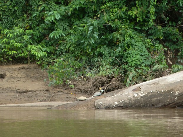 Mit der Sonne kommen auch Schildkröten aus ihrem nassen Versteck und sonnen sich auf Baumstämmen. Herrlich, wenn dabei bunte, meist gelb-orangene, Schmetterlinge um ihre hochgestreckten Nasen flattern und versuchen, etwas von dem mineralhaltigen Flusswasser zu ergattern.