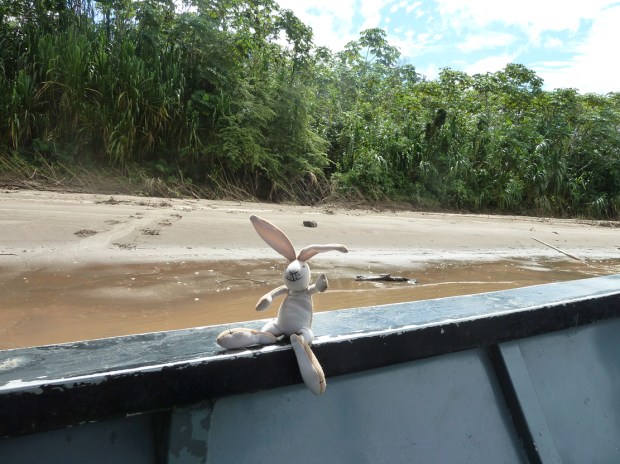 Am nächstenTag sitzen wir um 7.30 Uhr schon wieder mit Sack und Pack im Boot. Heute geht es den schlammig braunen Rio Manu hoch. Der Rio Manu mündet bei Boca Manu in den Alto Madre de Dios und zusammen fließen sie als Rio Madre de Dios in den Rio Madeira, welcher dann wiederum nach Norden verläuft und östlich von Manaus in Brasilien in den Amazons fließt.