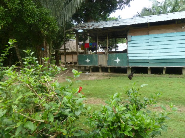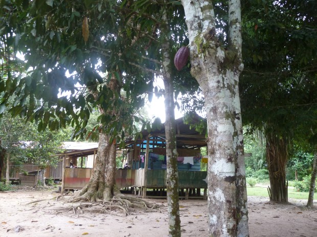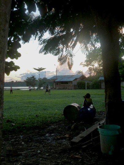 Gegen halb fünf erreichen wir die letzte wirkliche Ansiedlung Boca Manu, wo wir die Nacht verbringen, bevor wir morgen in die Reserved Zone des Naturreservates starten. Das 100-Seelen-Dorf versprüht einen eigenen Charme à la Fitzgeraldo. Vom mit Sandsäcken befestigten Anlegeplatz, wo sich die Kinder vom ruhigeren Arm des Rio Manu Flusses in den hochwasserführenden und deshalb stark strömenden Rio Madre de Dios treiben lassen (oje, oje, mein Mutterherz!) geht es direkt hinauf zum dorfeigenen Fußballplatz, umrahmt von der Shopping Mall und dem Verwaltungsgebäude.