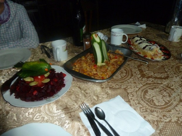 Das Essen ist trotz Zeitdruck wunderbar, geschmacklich kommt es zwar nicht an die Küche vom Salkantay-Trek ran, aber unser Koch Eloy gibt sich so herzlich viel Mühe, um es schön für uns anzurichten: