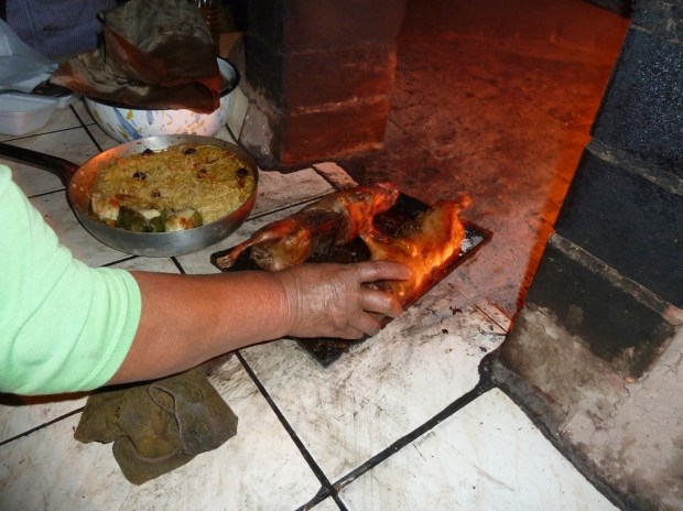 Nach fast 11 Stunden Fahrt mit Boot und Bus fahren wir um 17.45 Uhr in die Außenbezirke von Cusco ein. Juan-Carlos möchte Aaron und mir noch einen „letzten Wunsch“ erfüllen. Wir haben beide noch immer nicht die peruanische Hochland-Spezialität gegessen: Cuy al Horno – gebratenes Meerschweinchen! Für deutsche Haustierhalter sicher ein No-Go (bitte hier den Knopf mit dem Kreuz klicken), in Peru ein verhältnismäßig teures und geschätztes Essen, dass sich die peruanischen Familien oft nur an Feiertagen gönnen. Und was soll ich sagen, es war das beste Fleisch, das ich in den 4,5 Wochen Peru gegessen habe. Saftig, würzig, zart… aber leider auch wenig dran, wenn man die dicke, fettige Haut, Kopf, Füsse und Knochen abzieht.