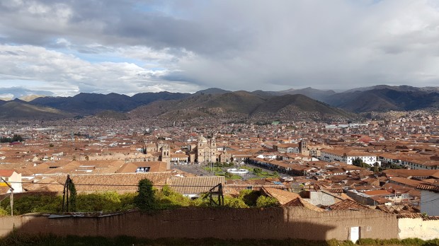 Aber mein eigentliches Ziel ist die Terrasse dort drüben, denn heute will ich endlich auch mal ein Ceviche kosten. Aber ganz so einfach ist die Querung nicht und ich muss erst wieder viele Treppen runter, um dann wieder alle hochzusteigen zur Limbus-Bar mit dieser gigantischen Aussicht auf Cusco.