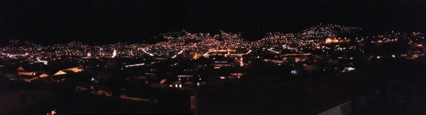 Hasi und ich genießen Aussicht, Pisco Sour und Ceviche und es ist schon lange dunkel, als wir den Nachhauseweg antreten.