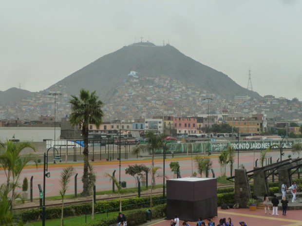 Auf geht’s zu einem werktäglichen Stadtbummel durch Lima. Die Kirche San Pedro präsentiert sich dieses Mal ohne Gerüst und die Lima-typische Dunstglocke gewährt mir auch einen fadenscheinigen Blick auf den Stadtteil Rimac und die Slums von Lima.