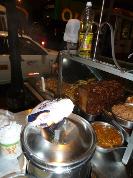 Leider gehen mir so kurz vor Reiseende dann doch noch die Pesos aus. Da muss ich doch glatt noch einmal einen ATM aufsuchen. Einfacher gedacht als getan, alle angesteuerten Automaten sagen Nein zu meinen Transaktionsversuchen. Mittlerweile hängt mir der Magen in den Kniekehlen. Dabei bin ich doch extra noch einmal bis zum Mercado Central gelaufen, um mir Anticuchos (Rinderherz am Spieß) zu kaufen. Oder wie wäre es mit einer dieser kunstvollen Torten?