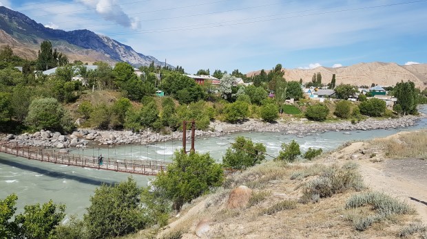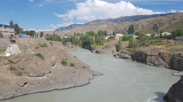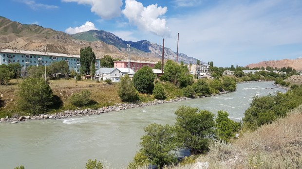 Den freien Donnerstag lassen wir gemütlich angehen mit spätem Frühstück und einem entspannten Bummel am Naryn-Fluss entlang, der mit über 500 km (Wikipedia) oder auch über 800 km (Reiseführer) Länge einer der größten und wasserreichsten Flüsse Kirgistans ist.