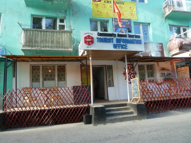 Nach gut zwei Stunden setzt uns unser Taxler fast direkt vorm CBT-Office ab. Dass wir dabei vergessen, ihm die zweiten 300 SOM zu geben, war sicher keine Absicht. Er hat es aber selbst bald gemerkt und kommt uns hinterher. Mittlerweile ist es beste Kaffeezeit und der im CBT angebotene Cappuccino deshalb genau das Richtige. Die übereifrigen jungen Studenten und Volunteers im CBT-Office wetteifern offensichtlich miteinander, wer wohl mit den gestrandeten Touris den längsten Small-Talk bestreiten kann. Es ist ja mal ganz schön, Englisch sprechende Kirigisen/Innen um sich zu haben, aber doch nicht gleich so viele auf einen Schlag?! Die Preise für Kaffee und Tee sagen schon aus, welchen Stellenwert beide Getränke in Kirgistan haben. Kaffee wird von Einheimischen praktisch gar nicht getrunken, kostet 100 SOM, Chai gibt es hingegen zu allen Tageszeiten und jeder Gelegenheit, kostet 10 SOM.
