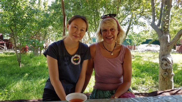 Es ist schon etwas surreal, wenn uns die beiden modisch aufgebrezelten Stadt-Mädels mit Sonnenbrillen und lackierten Fingernägeln ganz euphorisch von der Heilwirkung der Milch vorschwärmen. Besonders empfehlenswert ist eine Kur, zu der man für eine Woche jeweils fünfmal am Tag die Stutenmilch zu sich nimm. Das soll Magen und Darm reinigen und überhaupt vor so ziemlich allen Krankheiten und Leiden schützen. Nach der mehrmaligen, mit Handzeichen unterstützten, verbalen Wiederholung der strengen Wirkung des Gesöffs auf Magen und Darm, beschränken wir unsere Geschmacksprobe trotz aller Vorzüge auf einen klitzekleinen Nipp. Nur um ganz sicher zu gehen, begießen wir das Ganze anschließend noch in geselliger Runde mit Wodka-Cola.