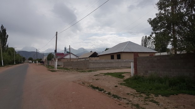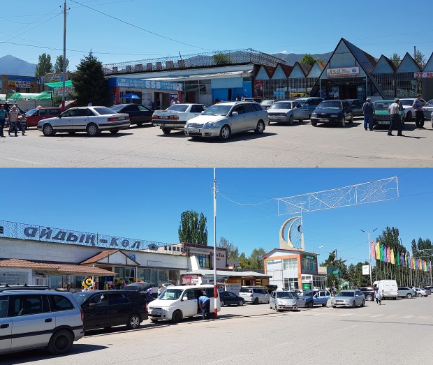 Bokonbaevo Stadt empfängt uns – wie kann es anders sein – mit einem bombastischen Einfahrtstor, hinter welchem sich umringt von einfachen Bauernhäuschen ein kleines, überschaubares Zentrum mit Geschäften und Marktständen befindet.