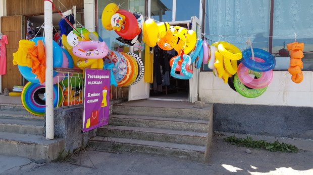 Da schauen wir uns doch lieber die Auslagen der Shopping-Mall an. Was für uns der Gardasee, ist für die Kirgisen der schöne Issyk Kul.