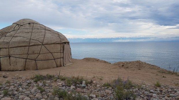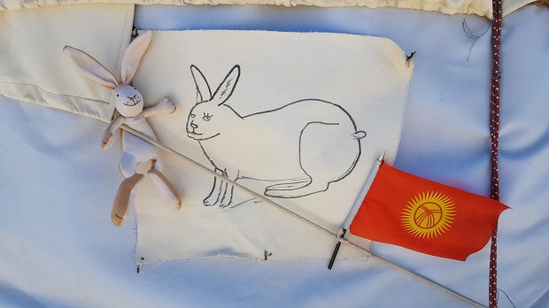 Das Yurt Camp Bel Tam liegt traumhaft direkt am glasklaren Issyk Kul. Nurwot, ein junger Kirgise mit geschätzten 14 Jahren, empfängt uns freudig und geschäftstüchtig in Englisch und führt uns kurzerhand zur Jurte namens „Rabbit“ direkt in erster Reihe zum See und mit Blick auf die kirgisisch-kasachischen Berge. Na, wenn das kein Zufall ist?! Hasi ist sichtlich erfreut und fühlt sich gleich zuhause – wir auch.