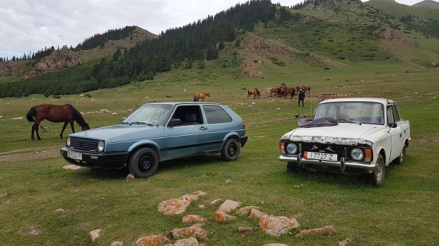 Vom Tal ist Eugen mit Familie vorgefahren. Er ist mit Bekzat befreundet und sozusagen ein vor Jahrzehnten in Kirgistan „hängen gebliebener“ Deutscher. Er führt sehr erfolgreich das zweite, etwas edlere Jurten-Camp am Issyk-Kul.