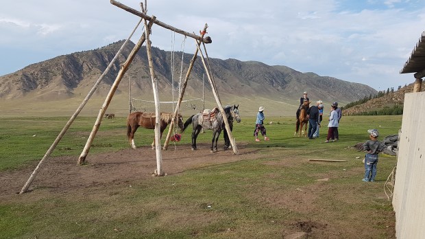 Die spartanische Idylle ist perfekt: eine Einraum-Holzhütte zum Verweilen und Essen, ein Feuerstellen-Unterstand zum Kochen, ein windgeschützter Freisitz zum Trinken, vier einfache Jurten zum Schlafen, das Plumsklo zum …, die obligatorische Schaukel zum Spaß haben und neben der 7-köpfigen Familie natürlich jede Menge PS auf vier Beinen oder vier Rädern sowie anderes Getier.