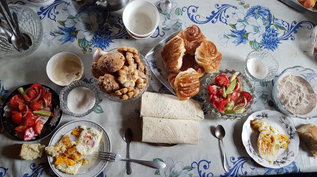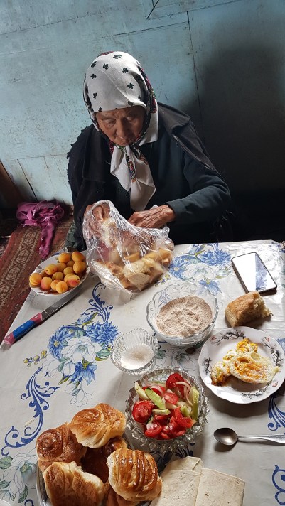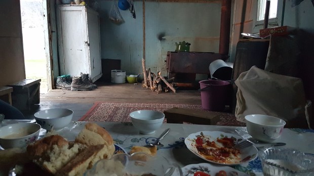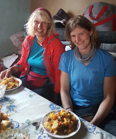 Wir schätzen uns glücklich, dass wir dazu nicht eingeladen werden, sondern in der Einraum-Holzhütte auf uns ein super leckerer Eintopf wartet. Nun wird auch klar, wer hier auf der Hochebene tatsächlich zur Schäferfamilie gehört. Vier Generationen sitzen bodennah-stuhllos am Tisch, angefangen bei der Großmutter mit sage und schreibe 97 Jahren bis hin zum erst ein paar Wochen alten Urenkel!! Die Atmosphäre ist überwältigend, die Einfachheit, das Alltägliche und Beständige ist so intensiv spürbar – wir sind in einer anderen Welt!