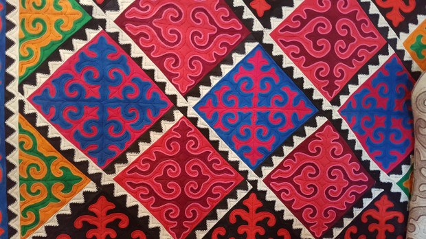 Am Ende besuchen wir noch den Shop. Wunderschön und sauber gearbeitet sind die Shyrdaks, aber halt kein leichtes Mitbringsel – weder was das Gewicht angeht, noch die Kosten. Lea ersteht dann aber zumindest einen hübschen Schal für Schwester Lara und natürlich spenden wir auch einen angemessenen Betrag für die Sonderführung.