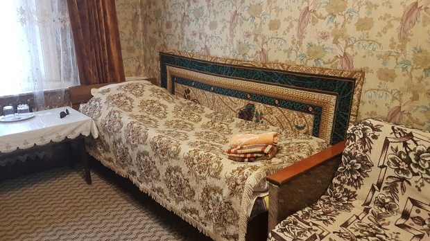 Anders als der Name es vermuten lässt, ist das Neofit kein Fitness-Tempel, sondern tatsächlich ein altehrwürdiges Hotel mit Geschichte und Tradition. Die englische Sprache ist an der Rezeption noch nicht angekommen, aber die junge Frau ist sehr bemüht. Durch einen hübschen Innenhof führt sie uns zu einem Zimmer-Ensemble mit kleinem Bad und Freisitz. Ganz hübsch – auch wenn die Zimmerausstattung neben dem Charme alter Zeiten auch den staubigen Muff vergangener Epochen ausströmt. So ein bisschen kommen wir uns vor wie am russischen Zarenhof und unsere Nylon-Rucksäcke und multifunktionalen Outdoor-Klamotten wirken wie die Invasion der Aliens.